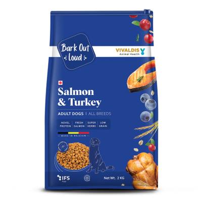 Bark Out Loud's Salmon & Turkey formula for your furry friend, is made with novel protein for exceptional quality. This low-grain adult dog food blend also includes a mix of beneficial berries, fibers, and super herbs, enhancing your paw buddy's overall well-being. Give your beloved pet the best with this excellent and nutritious option. High Quality Novel Protein Low Grain High Nutritional Value Gut friendly prebiotics Enriched with Super Herbs – source of Natural Antioxidants Fresh Salmon – for Healthy Skin Added Glucosamine & Chondroitin No Added Sugar 100% Preservative Free