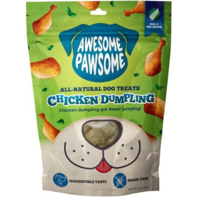 Our Chicken Dumpling flavor dog treats are made with cage-free chicken and fresh vegetables. Grain free. Our dog treat is tasty goodness that's safe for pets with food sensitivities.Supports Dog's immune system. Awesome Pawsome dog treats have added natural antioxidants which help boost your pet's natural defenses. Our resealable pouch is easy to store in a bag or pocket. Pull out all natural Awesome Pawsome dog treats anytime, anywhere, and make any moment extra awesome for your furry friends! Tear it up, break it apart, and make the awesome last even longer with our Awesome Pawsome Dog Treats. Our treats are made in New Zealand, the cleanest place on Earth to make pet food. Every scrumptious bite of Awesome Pawsome dog treat is packed with all-natural, grain-free ingredients and are naturally healthy for your pet!