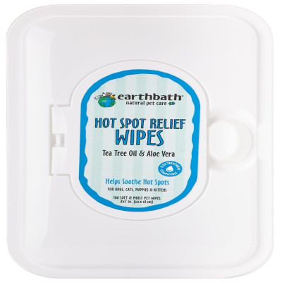 earthbath® Hot Spot Wipes are infused with tea tree oil and aloe vera to naturally help soothe and relieve hotspots and itchy, dry or chafed skin caused by flea bites, dandruff, or other dermatitis. Tea tree oil is renowned as an effective and beneficial remedy for skin irritations, insect bites and itching, while aloe vera is one of nature’s finest soothing emollients. Use these wipes in conjunction with earthbath Hot Spot Relief shampoo and spritz for best results. Safe for all animals over 6 weeks old.