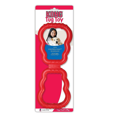 KONG Tug Toy encourages interactive play sessions. The Tug Toy is made with natural KONG rubber, that springs back into shape during a game of tug. The comfortable grips make it easy to keep hold during on-going games of tug.